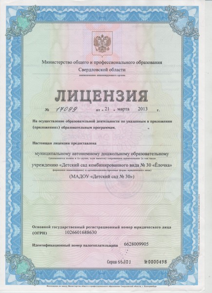 | Полное наименование образовательной организации* | Муниципальное автономное дошкольное образовательное учреждение «Детский сад комбинированного вида №30 «Ёлочка» |